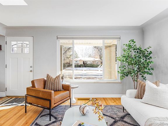 Blending classic charm with modern details, this residence is perfectly situated between Sloan’s Lake and Highland Square. A covered front patio invites entry further inside to an open-concept layout flowing w/ refinished hardwood flooring and fresh wall color throughout. Large windows and thoughtfully placed skylights draw in gorgeous natural light, creating a bright and airy atmosphere. A spacious living area offers plenty of room for at-home relaxation and entertaining. Recently updated, the kitchen showcases stainless steel appliances and sleek countertops. Two sizable bedrooms present possibilities for one to be used as a home office or guest accommodation. A full bathroom has been updated w/ chic subway tile and modern fixtures. Outside, a large backyard presents endless possibilities for personalization while a detached one-car garage offers storage space. Residents enjoy a central and desirable location w/ close proximity to both Sloan’s Lake and Highland Square amenities.