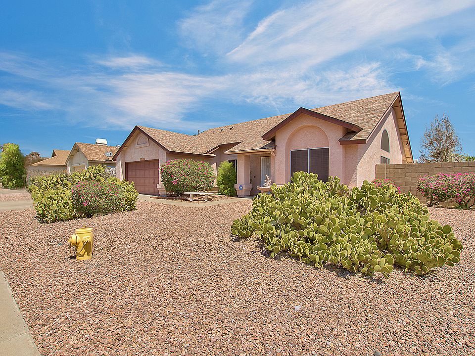 Don't miss out on this AMAZING home in Mesa! The home shows pride of ownership and has been well maintained! You're going to love the premium corner lot with only one neighbor. Enter the home and you're going to find vaulted ceilings, gorgeous white plantation shutters, glass pane french doors going into the den/office, upgraded fans/lighting, the carpet is in great shape with a nice pad, spacious kitchen with bar-top, dining area, tons of cabinet storage, pantry, gas stove-top, gorgeous plank laminate wood flooring in the kitchen and hallway, remodeled guest bath with a new vanity, spacious secondary bedrooms, laundry room with washer/dryer, large master bedroom, dual vanities in the master bath with a door to the backyard! The roof was replaced in 2012. The HVAC was replaced in 2013! The backyard is going to be your weekend oasis! There is a large sparkling pool, covered patio, and tons of cool-decking for laying out. The home is centrally located with quick access to the highway, shopping and restaurants. You're going to love everything about this home!