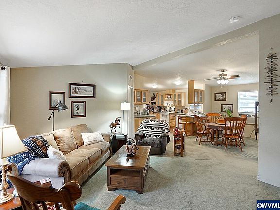 Very nice manufactured home in 55+ park. House was the model home at the manufacturer. Split bedroom floorplan lets the space live large, and there are both a formal dining area and breakfast nook. All bedroom closets have lots of space for storage. The front deck with retractable awning provides a comfortable outdoor space. Yard has garden space. This is a MUST VISIT property!