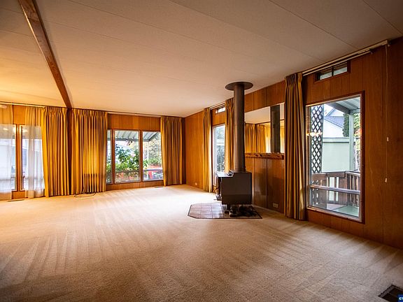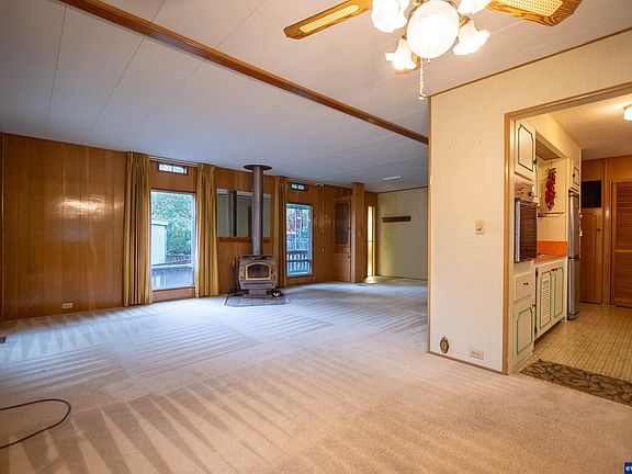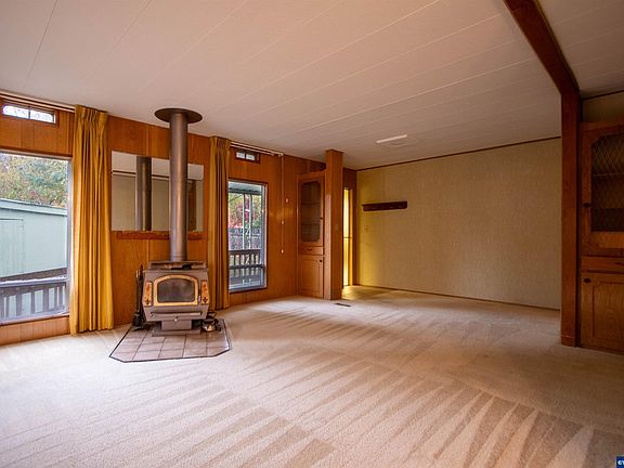 Come see this welcoming home, ready for your personal touches. Start your mornings with coffee on the covered deck overlooking a fenced yard. A convenient ramp provides easy entry, leading you into a spacious floorplan. The kitchen offers ample storage for effortless organization, & a cozy wood stove keeps you warm on chilly evenings. With a step-in shower for added comfort & accessibility, this home combines charm & practicality. Near shopping, dining, & the hospital this home blends convenience & comfort.