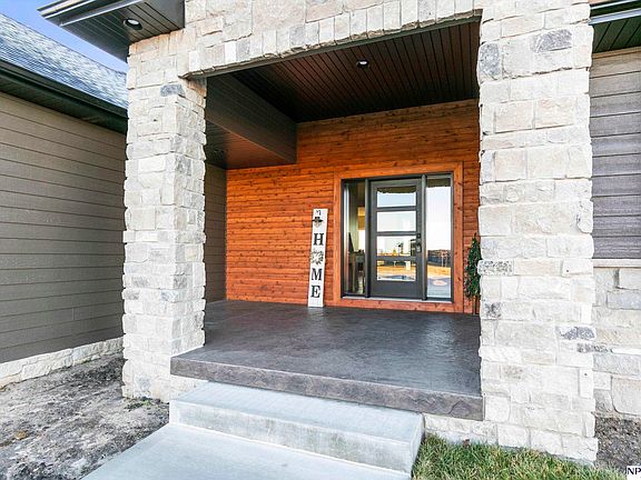This stunning 5-bedroom, 3-bath ranch home with a fully finished walkout lower level, offers ample space for family or guests. Built by one of the area's top builders, this home features exquisite craftsmanship throughout. You'll love the cedar accents, stonework, oversized driveway, and 4-car heated garage. Inside, soaring cathedral ceilings, open spaces, and a floor-to-ceiling stone fireplace highlight the great room, which flows into the dinette and onto a covered balcony deck with low-maintenance composite materials. The kitchen boasts a large island, abundant cabinetry, and pantry. The primary suite features French doors, a walk-in closet, double sinks with granite, and a beautifully tiled walk-in shower. Two additional bedrooms, a guest bath, and a utility room complete the main level. The walkout lower level includes two bedrooms, a family room with a wet bar, a storm shelter for added security, and patio access. Schedule your showing today!