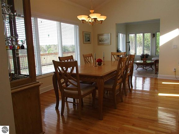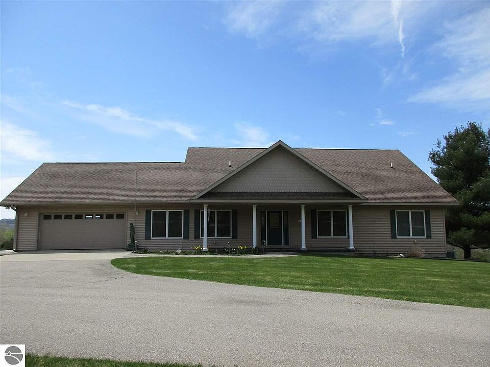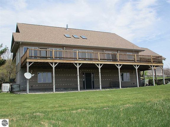 Solid well built ranch home situated in Benzie County just outside the City of Frankfort. 3 plus bedrooms, 2 baths and large open living space with country side views. 2.5 acres with blooming apple trees, perennial gardens and raised herb gardens for your spring fun. Solid wood floors and ceramic tile through out the home with a large walk in shower in the master bedroom, walkout basement, partially studded in with plumbing for 3rd bath, large 53 x 13 back deck off the dinning and living area for your family and friends gatherings. Beautiful 16 x 12 sun room with entrance to the deck. Generac generator, air conditioning , sprinkler system, security system and the list goes on and on. Quality home with that country feel, yet less 5 minutes from town. Widened doorways and handicap accessible. Furnishings negotiable