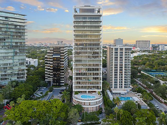 Modern Elegance Meets Iconic Service at Mr. C Residences, Coconut Grove. Wake up to incredible sunrise views stretching toward Key Biscayne in this beautifully finished 3 bedroom, 3 1/2 bath residence that offers a fourth flex space that may be used as a bedroom, den, or private dining room. Spanning 2,623 square feet, the home is surrounded by an expansive wraparound terrace that encircles the entire residence, creating a seamless indoor-outdoor flow and framing breathtaking views from every angle. Inside, the open layout is accentuated by 11-foot glass walls that fill the space with natural light. Finishes include Italian terrazzo, quartz countertops, European porcelain flooring, and solid wood doors, all chosen for timeless sophistication. Each closet is fully built out with premium finishes and illuminated hanging bars, while the laundry room is equally refined and functional. Select rooms feature electrical service designed to accommodate gallery lighting and a custom hallway fixture, ideal for showcasing art or creating the perfect ambiance.