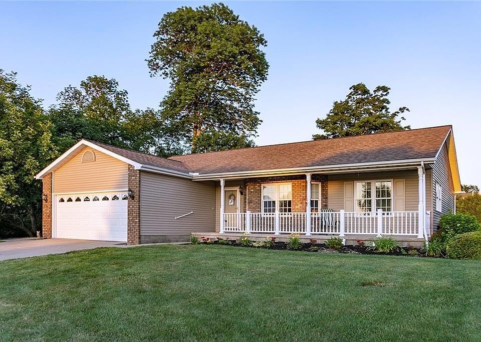 This patio home has the BEST VIEWS in the neighborhood! You'll have 3 great choices: Sunset over the landscaped pond from the front porch; landscape views from the West deck with a Sunsetter awning, or the East deck overlooking the adjacent wooded area. Both are composite material. The Association installed sprinkler system in the front, spreads bark in planting areas, and shovels all the way up to your front door in the winter. Come for the view; stay for a more enjoyable life!