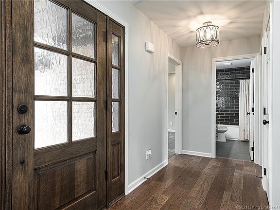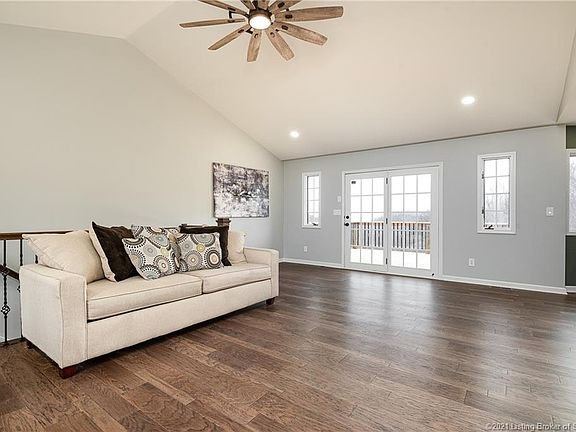 START PLANNING YOUR THUNDER PARTIES TODAY because this exceptional home nestled on a 3 acre beautifully wooded lot in Floyds Knobs features fabulous valley and Louisville skyline views along with an awesome shot of the 2nd Street Bridge! This beauty has been professionally designed and completely remodeled, top to bottom (everything is NEW), with attention to detail and gorgeous amenities by one of finest designers in Kentuckiana! Enter this dreamy home through the solid mahogany door with waterglass accents into the lovely living room w/ a vaulted ceiling, a high-end ceiling fan & French door that lead to a wonderful back deck. The sprawling 1st floor family room streams with natural light, gorgeous views, a built in bench and French door leading to a private side deck! The outstanding kitchen features bright, beautiful cabinetry w/ soft close feature, granite countertops, tiled backsplash, oversized sink w/ window above, a window seat, a full complement of appliances & an eat in area w/ gorgeous "City Views"! The main suite is incredible with a vaulted barnwood ceiling, chandelier, a stunning and luxurious private bath along with 2 walk in closets! The lower walk out level features lots of addt'l great finished space w/ a wet bar, woodburning stove, a perfect spot for a billiard table, a room perfect to serve as a 4th bdrm (no window) & a full bath! This property features a 2 car attached and 2 plus car detached garages! Call today & Call it home! Sq ft & rm sz approx.