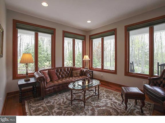 Custom Built by Calico Builders and Set Back on 2.38 Quiet Acres, Directly Across from the Lake & just a Short Stroll to one of Lake Nockamixon's Boat Launches! Dramatic Custom Design of 4,900 Square Feet. This 2 x 6 Construction Masterpiece, Includes Ceiling Heights of 19', 11' & 9'. The Striking Flooring throughout the Entire First Floor is Lyptus Wood. The 2 Story Entry Foyer is 10' Deep, and Showcases an Amazing Circular Staircase - A True Creation of Art. The 19' Ceiling GREAT Room Boasts a Two Story Wall of Windows with Remote Controlled Window Shades & a Floor to Ceiling River Stone Gas Fireplace Plus a Custom Built-In Home Theatre which Completes this Exceptional 26 x 20 Room. The Ultimate Granite Kitchen with Bar/Island and Brand New Stainless Steel Appliances Adjoins the Breakfast Area and the 3 Season Room. Transition to the Dining Room via an Over Sized Butler Pantry with Wine Rack & Cooler. A Window Wrapped First Floor Office or Den with Frank Lloyd Wright Designed French Doors will be a Favorite Retreat for You. The Master Suite Includes a Two Sided Fireplace, Two Walk-In Closets, a Sumptuous Bath with Double Shower + Radiant Heated Floor and Heated Towel Rack. 4 Additional Bedrooms and 3.5 Additional Baths, Including a Jack N Jill Bath and an Over-sized In-Law Suite or Au Pair Suite. Three Exceptional Finished Levels with Additional Features Including: 3 Fireplaces, 3 Car Garage, a Huge Walk-In Pantry, a 12 x 11 Laundry Room Large Enough to be an Additional Office or Hobby Room, Pella Windows throughout, Spacious Covered Trex Deck that is Prepped for a Hot Tub, 4 Zone Heat and 3 Zone Central Air Conditioning.
