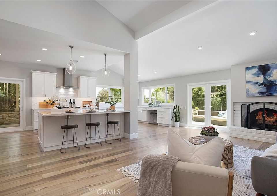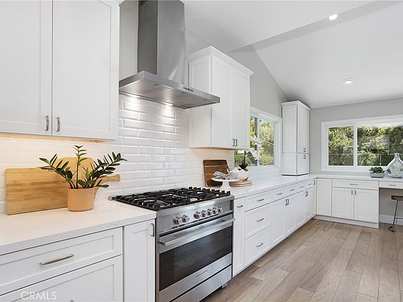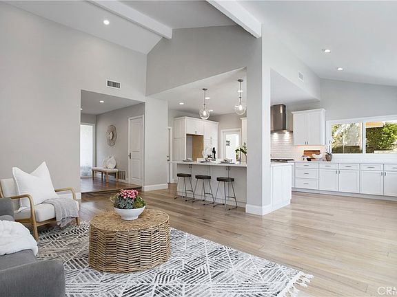WELCOME TO THIS GORGEOUS SINGLE-STORY, FULLY REMODELED HOME LOCATED IN ONE OF THE MOST HIGHLY SOUGHT-AFTER NEIGHBORHOODS IN SOUTH MISSION VIEJO! This stunning home is an entertainer's dream w/ a desirable expansive open floorplan concept that is the epitome of California living. As you enter the home you're welcomed into the great room encompassing the chef’s gourmet kitchen & stylish living room area. The huge kitchen island is the centerpiece of this space & is the perfect area for family & guests to gather. The kitchen features Quartz countertops, stainless steel professional appliances including Fisher & Paykel 36” gas oven, 36” ventilation hood, 24” Bosch dishwasher, Artisan under mount single bowl sink w/ streamlined plumbing fixtures, garbage disposal & waterline plumbed for a refrigerator ice/water dispenser. Custom white shaker cabinetry, including appliance garage & pull-out drawers throughout, provides an immense amount of storage. Under counter, pendant & recessed lighting, coupled w/ new dual-paned single-light French door, windows & double French doors offer the perfect blend of indoor & outdoor living. The comfortable living room showcases an amazing real wood-burning gas fireplace. The primary suite w/ updated ensuite bathroom, features another set of French doors opening to the backyard, a wonderful built-in desk area & mirrored wardrobe doors. Each secondary bedroom features plantation shutters & ceiling fans. The updated secondary bathroom also offers a vanity, tub/shower combo w/ frameless glass shower enclosure. Step outside to a wraparound yard w/ an enclosed patio outfitted for the opportunity to install dual gas heaters, TV, & just adjacent to a built-in BBQ area w/ refrigerator space & storage cabinets. Enjoy the city light & hillside views from the sitting area or Jacuzzi. This large, tastefully landscaped yard, has RV potential. Spacious 2-Car Garage w/ built-in shelving, washer/dryer hookup, utility sink & huge attic/storage area above the garage. Home fully re-piped with pex, new ducting throughout & much more! No HOA, however, this home is only a small collection that Lake Mission Viejo affords the opportunity for full membership. Award-winning school options, close to La Sierra Rec Club w/ membership options to pool/spa, water slide & fitness center. Close to Granada Park, hiking, biking, walking trails, close to freeways, shopping, restaurants, & a short drive to some of the best beaches in the world. Welcome Home!