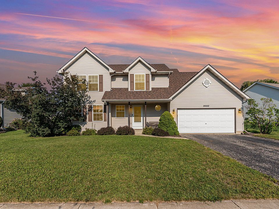 Beautiful spacious 2-story home located in Hunters Crossing Subdivision offering upstairs 4 bedrooms and 2.1 baths, ideally located within walking distance to Minooka Community High School. Main level features beautiful hardwood floors, a welcoming formal living room, dining room, eat-in kitchen with lots of cabinets and lots of natural light, the kitchen area overlooks the two-story vaulted ceiling family room with a cozy wood burning fireplace. Enjoy a versatile loft, Master bedroom with full bath. The full-height basement is open for endless possibilities, 2-car garage. The ample fenced backyard is perfect for entertaining with a large deck, shed, and an above-ground pool. Relax on the charming front porch and take advantage of the home's prime location near shopping, restaurants, parks, and bike paths, with easy highway access. Comfort, potential and location all in one, your family next chapter starts here. Book your private tour today!