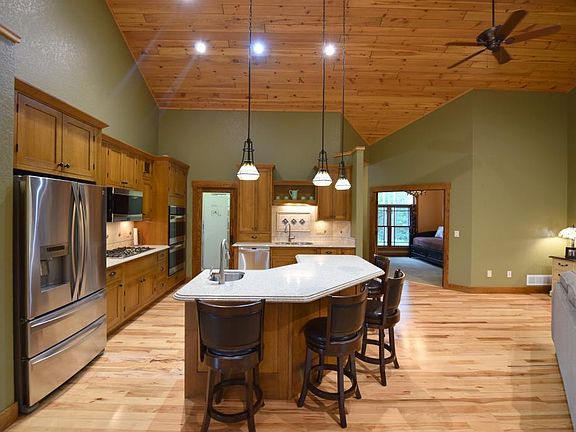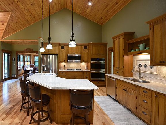 One of a kind masterpiece nestled in the woods just north of Nisswa. You will love this custom Baratto Brothers home with every possible option. This 4 bedroom 3 bath craftsman style home features rustic hickory floors, solid oak cabinets, gourmet kitchen complete with stainless appliances, wine fridge and double oven, four season porch, new curved deck, new roof, main floor master suite, attached heated garage, detached heated 30x40 garage, green house, manicured grounds, fire pit & more!