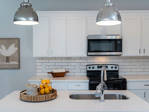 Step inside to find durable waterproof composite hardwood and tile floors that combine style with practicality. The kitchen boasts top-of-the-line stainless steel appliances, sleek white cabinetry with soft-close drawers, elegant engineered stone quartz countertops, and a chic tile backsplash.