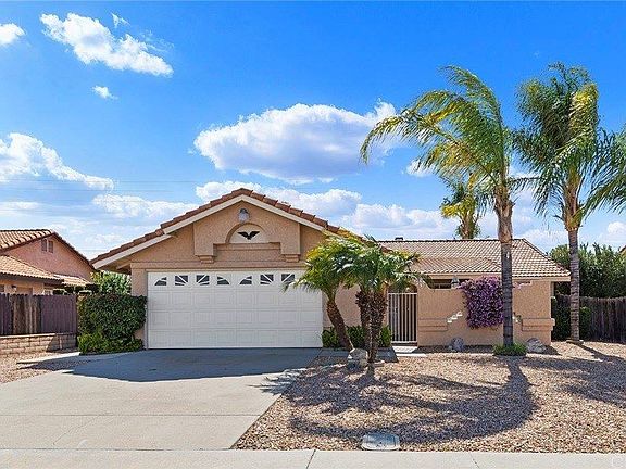 Just minutes from shopping and entertainment, this beautiful 2B/2BA, w/2-car garage home is located in the city of Menifee. It is centrally located between Los Angeles & San Diego in a friendly, quiet, 55+ Community. This home has a private courtyard in front surrounded by beautiful flowers. This home has an open concept floor plan with lots of natural light. The family room opens to the beautiful backyard through a large sliding door. There you will enjoy your own private oasis with no neighbors behind the home. There is also access to the backyard from the master bedroom to the patio. This private yard has mature trees and shrubs and a large concrete patio that is fully covered the entire length of the home. You will also have direct access to paved biking and walking trails from the backyard and a large above ground spa to enjoy. This home is close to everything from shopping, restaurants, fire department, hospitals, schools, and gyms. There is plenty of storage with the storage shed on the side yard. DonâEUR(tm)t miss this great home in a quiet and private neighborhood! LOW TAXES!