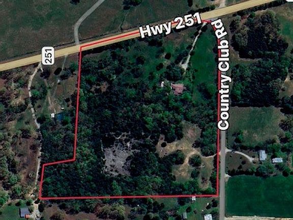 2278 SQ FT HOME ON 16 ACRES! Sitting on the corner of Country Club Road and Highway 251, this is the perfect location! The home is 2278 square feet with 3 bedrooms, 2 bathrooms, living room-kitchen-dining room combo, formal living room, sun room, laundry room and 1 car garage. Home has been sitting empty several years and needs work. Some hardwood floors, 5 year old central heat and air, rock wood burning fireplace and excellent location. Home has well but rural water runs along road. Clay County Electric and Clay County Connect Fiber Optic Internet. Propane Gas. 16 acres is mixture of woods and pasture. Has an old rock quarry, old pond that needs work and a spring fed, year round creek. Highway frontage on 2 sides. Several outbuildings. This is a diamond in the rough! Being sold “AS IS” with no repairs being made and some contents staying.