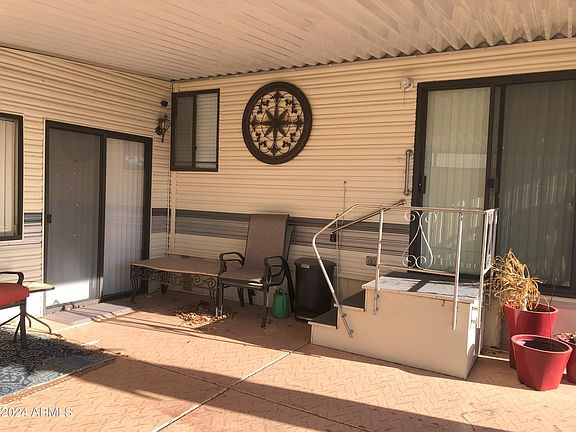 COME RETIRE LIKE YOU MEAN IT! This lovely updated Mobile Home with large Arizona Room is ready for you to move right in! COME LIVE THE ACTIVE & ENJOYABLE LIFE YOU HAVE ALWAYS DREAMED OF in this updated Cavco Catalina features 1 bed / 1 bath / Arizona Room / Inside Laundry. All Furniture is included + kitchen utensils. New Covered patio, New HW Heater. Apache Wells RV Resort is a 55+ community that offers many amenities, see sheet in docs tab. Kitchen offers new counters. New Interior Paint, New Flooring. Full size washer and dryer.