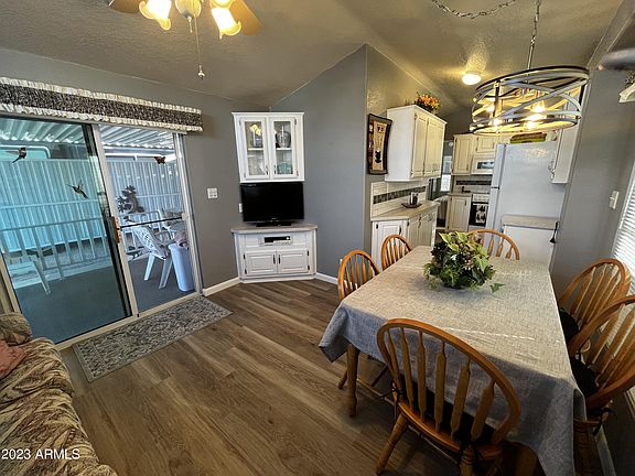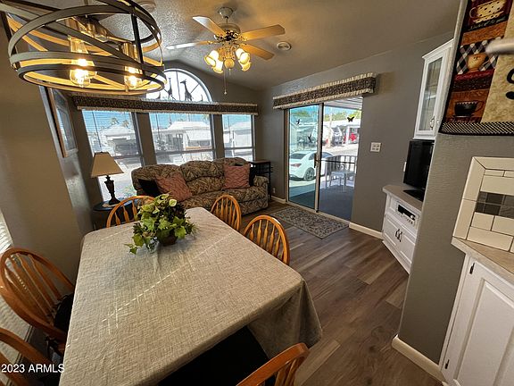 Beautiful Park Model Retreat*!*Single Wide Mobile Home with LG Arizona Room, eat in kitchen & sitting area with sliding glass doors that open up to the LG Patio Deck! Beautifully Remodeled Kitchen & Bath, brand New Tile Flooring, Step in Shower, Stove & Water Heater. Features Sunscreens, covered carport with privacy wall. Washer, Dryer, Frig & some furniture included. !*LOCATION!*! This Active 55+ Community of Apache Wells RV Resort has many daily organized ACTIVITES & amenities . (List in the documents tab). Owners have access to all CalAm resorts & amenities. MOVE IN READY. Make this beauty your Home Sweet Home, your Winter Retreat or Investment property (RENTALS OK)! !*!OPTIONS!*! Convert the AZ room into an onsuite to make this a 2+2. Buyer to be approved by Park, $50 background chk.