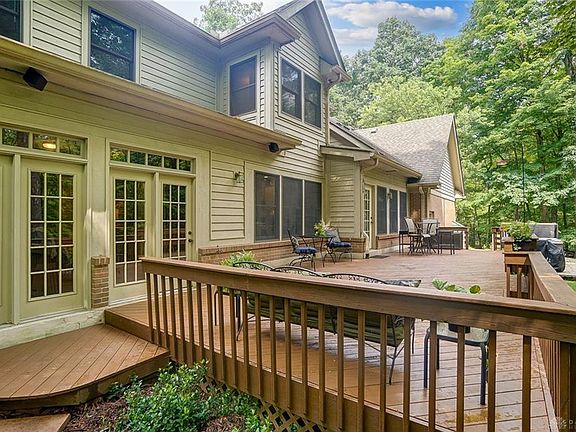 Down the driveway and through the woods to the clearing you'll find this stately 2 story brick home. It is much more than a house....it's a retreat on 3.68 acres. If private & peaceful sounds inviting to you, don't delay scheduling your showing. This 4 Bedroom, 2.1 Bath home offers a beautiful updated kitchen with large island, duel fuel range & wall oven, granite countertops, numerous cabinets. At time of the update, a wall was removed to open the kitchen to a sweet room that adjoins the breakfast area. The views from the family room and kitchen area are stunning. Large family room with woodburning fireplace, living room, large dining room, an extra large laundry room, breezeway to the 3 car garage and an extra room (currently used as the office but could be a 5th bedroom) complete the first floor. There are 2 staircases, one in center hallway & second from the kitchen- very convenient to the primary bedroom. WAIT! until you see the new owners bath, double vanity, walk in shower, soaking tub all completed with neutral grays & beige tones (LOVELY) plus two walk-in closets. Adjacent to the primary bedroom is a special bonus room that could be used in many ways. Three more spacious bedrooms with generous closet space complete the second floor. Walk out to the newly stained oversized deck with built in seating and flower boxes. Truly, the view and the grounds along with the sounds of the birds and the quiet are so peaceful. There us a nice firepit area and the hot tub will convey. A perfect home for large gatherings and entertaining or just relaxing and enjoying. The little details at time of custom construction are scattered about....notice the built in baby gates at the top of the the back staircase near the owners bedroom and special corner in primary bedroom perfect for a reading nook....so much to see!! Annual Homeowners $200.00 fee for common greenspace