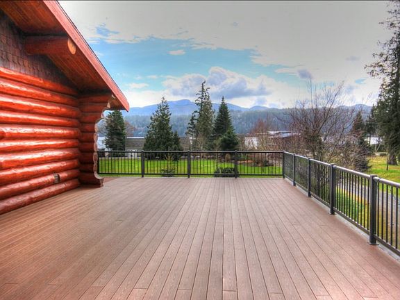 Sweeping Sky, Mtn, and Lake views from this beautiful custom log/stone home that boasts floor to ceiling windows. Great room w/gourmet kitchen, stainless steal app, granite counter tops, custom cabinetry and hard wood floors. Mstr ensuite w/spa like bath, Lg deck wraps around 2 sides of the home, patios surround the patio & oversized garage. Fully fenced 2.5 acre pasture in back w/shed.