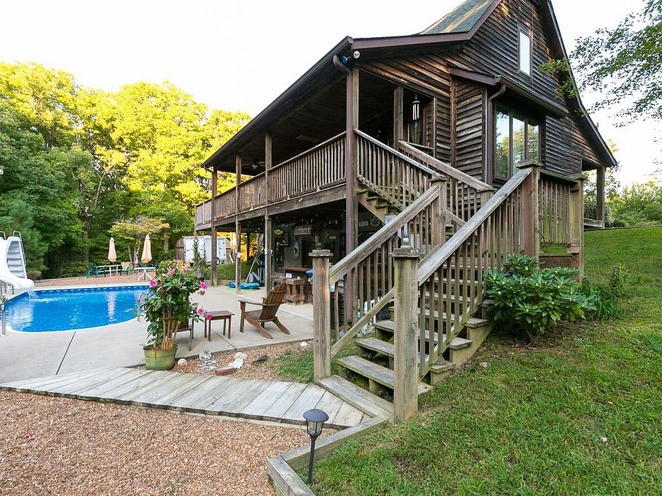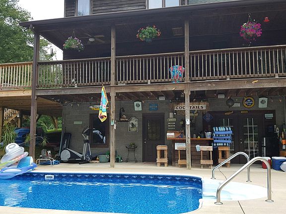 DO NOT DISTURB TENANT ! 3 bed 3 full bath on 10 acres. In-ground pool, hot tub. Secluded and quiet with mature trees all around. Rocking chair front porch, deck in rear. Downstairs apartment with exit door to pool and patio. Gas logs, living room vaulted to second floor. More Pics in virtual tour. 24 hr. notice. Agent related to seller.