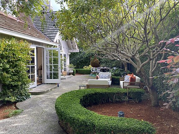 This house speaks charm. From the minute you enter you will notice the details. Both front and rear yards are enclosed and private with beautiful gardens. Inside you will find an abundance of windows, keeping the house filled with light year round. The home features a large living with multiple doors leading to the rear yard and patio. In addition, there is a separate family room which could also be a large office or hobby space. The ground level primary suite includes quaint window seats with views of the gardens, a wood-burning fireplace and vaulted ceilings. There are many details to this house including skylights, designer lighting, plus pocket doors in the kitchen, master bath and closet. Upstairs there is an access to a large storage area.