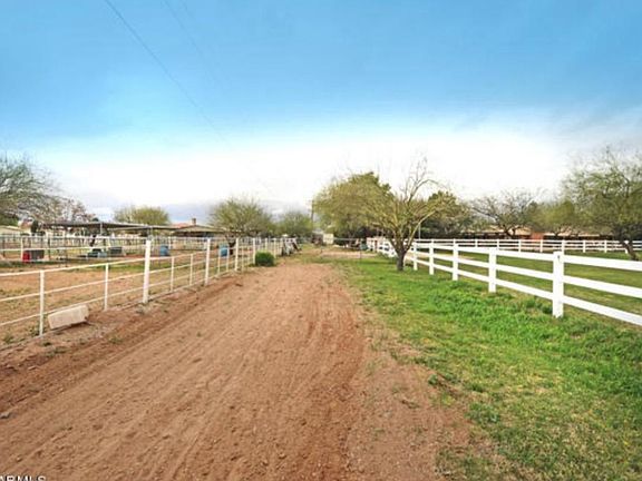 GET AWAY FROM IT ALL! THIS IS SUCH A GREAT RANCHETTE! MULTIPLE GREEN PASTURES SURROUNDED BY WHITE FENCING...IRRIGATED AND METICULOUSLY MAINTAINED! BARN WITH 4 SPACIOUS STALLS AND RUNS THAT OPEN TO PASTURE, TACK ROOM, HAY STORAGE AND GROOMING AREA. GREAT ARENA, SHADE TREES IN ALL PASTURES. THE HOUSE IS A RAMBLER STYLE AND BLOCK/FRAME CONSTRUCTED WITH A TON OF CHARACTER! GREAT MASTER SUITE WITH HUGE WALK IN CLOSET AND PRIVACY. OTHER 3 BEDROOMS ARE LOCATED ON THE OTHER SIDE OF THE LIVING AREA. LIVING ROOM HAS A FANTASTIC STONE FIREPLACE FOCAL POINT AND A COMBINED FORMAL DINING ROOM FOR ENTERTAINING!VAST ENTERTAINING PATION ACROSS THE ENTIRE EAST SIDE OF THE HOME...CITRUS TREES, PINE TREES AND MESQUITE ALL PROVIDE FANTASTIC SHADE AND PRIVACY. VIEWS OF THE SAN TAN MOUNTAINS TO THE EAS