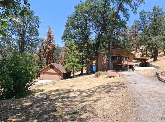 Lovely 3 bedroom, 2 bath nestled in the oak trees, with views of mountains and local wildlife! Open family room, with loft, 2 bedrooms and media area downstairs, as well as enclosed patio/sunrooms on both levels give this home a spacious living space. Attached carport, outbuildings, this home is ready for new owners!!