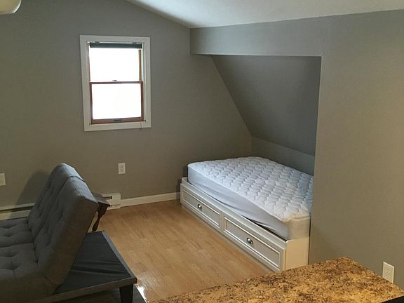 Above garage single room. Stand alone building. Owner pays utilities; water, sewer, gas and electric. Antenna Tv. Nice River view. Off street parking. Quiet neighborhood. 1 year, Owner pays utilities; gas, water, sewer, electric. Local tv.