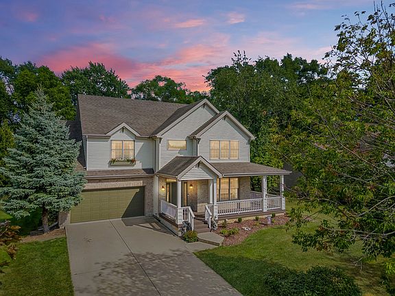 Nestled in the enchanting Highlands Subdivision, this 3100-square-foot home boasts 4 bedrooms, 2.1 bathrooms, a chic office space, and a secluded, breathtaking backyard sanctuary. Approaching the house, your eyes will be captivated by the grand, expansive wrap-around porch, bestowing an aura of timeless elegance and undeniable curb appeal. As you step indoors, you'll be greeted by the impressive 10-foot ceilings of the first floor. The custom-designed family room commands attention with its beadboard vaulted ceilings and a majestic floor-to-ceiling fireplace, infusing the space with inviting warmth and distinct character. This residence has been lovingly maintained, and it showcases gleaming hardwood flooring that spans both levels of the home, providing both practicality and beauty. The kitchen is a culinary enthusiast's dream, adorned with white custom cabinets, newer appliances, and updated lighting. Whether you're whipping up a family feast or hosting an elegant soiree, this kitchen is your culinary canvas. Retreat to the generously proportioned primary bedroom, where a tray ceiling, walk-in closet, a secondary closet, and a cozy fireplace beckon. The spacious private bathroom features a dual-bowl vanity, a separate jetted tub, and an invigorating shower. Venture down to the full unfinished basement, where you'll encounter a semi-finished room that could easily transform into a playroom, 2nd office, or gaming area. The basement also holds the promise of future possibilities with a bathroom rough-in. Step outside into your private oasis, complete with a rear deck and an expansive concrete patio, perfect for hosting outdoor gatherings or engaging in sports and activities. This extraordinary home seamlessly weaves together style, comfort, and convenience, with the added assurance of radon mitigation and an indoor sprinkler system for your safety. Seize the opportunity to claim ownership of this exceptional property, nestled near McKinley Woods and the Des Plaines River with convenient access to I55! Don't let this one get away!