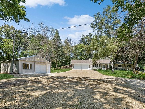Come see this 10+ acre homestead! A delightful find for one lucky buyer. A charmingly updated home with attached garage plus a finished, heated, and cooled, detached workshop and plenty of land to add on or build more. This land is a tribute to a lifestyle rooted in simplicity and a deep connection to the earth. There is a peaceful feeling here. The kind of space that opens the door to opportunity. Have you imagined your own quiet acreage retreat, or maybe a prosperous home-based business? There is room to spread out and grow here, but still close enough to enjoy all the good shops, good food, and good fun available in Lakeville, MN, including the highly sought-after Lakeville School District #194 and the area's best parks, lakes, and trails. The value of this land is likely to keep growing. Home offers all living on one level. Very large primary bedrooms suite with private full bath and extra large walk-in closet. All fresh paint, new flooring, updated lighting, plumbing, counters, hardware, stainless steel appliances, giant walk-in pantry, new a/c, new heat, updated roof, siding, and septic. Move in ready with upgraded features throughout! Welcome Home!