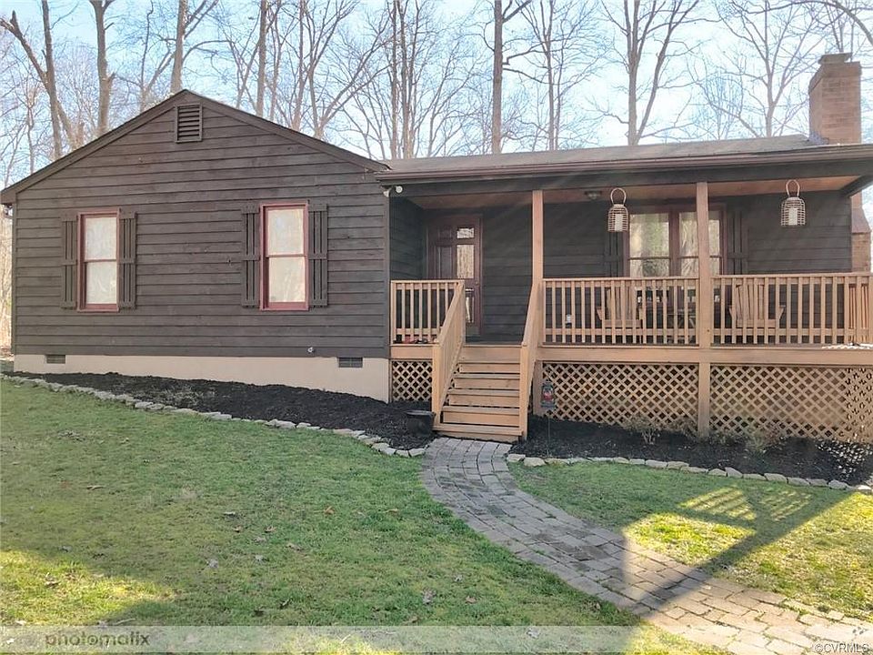 Fantastic home in convenient location just west of 288, West Creek and Short Pump! 1.5 acres ready for your garden, chickens or entertaining! Warm, inviting country front porch, huge multi-level rear deck! Open floor plan includes vaulted ceiling in the family and dining rooms. Brick fireplace. Hardwood floors throughout! Granite counters in kitchen and plenty of cabinet space. New dishwasher! Master suite includes cedar-lined walk-in closet and beautifully renovated master bath! A real treat included - Husqvarna Auto Mower! Sit on your deck relaxing while your grass is being mowed! Did I forget to mention a Home Warranty is provided, too?