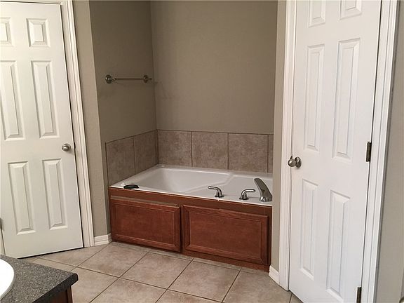 Split Bedroom floor plan with tile and crown molding. Master bedroom with his and hers closet, whirlpool tub and separate shower.