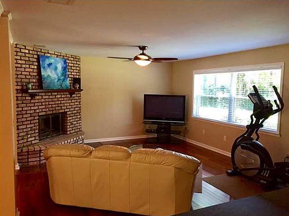 NEW PRICE! WHAT A LOCATION! HOME INCLUDES FORMAL/INFORMAL DINING AREAS, GORGEOUS HARDWOOD FLOORING, HUGE OPEN FLOOR PLAN WITH BRICK FIREPLACE GAS STARTER AND BLOWERS TO HEAT HOME. KITCHEN BOASTS CUSTOM CABINETRY, GRANITE COUNTER TOPS WITH LARGE BAR. SPLIT BEDROOM PLAN WITH MASTER HAVING A WALK IN CLOSET AND FULL BATH. DETACHED DOUBLE CAR SHELTER WITH WIRED WORKSHOP, STORAGE BUILDING AND BOAT/ MOTOR HOME SHELTER. THIS HOME HAS A NEW ROOF !