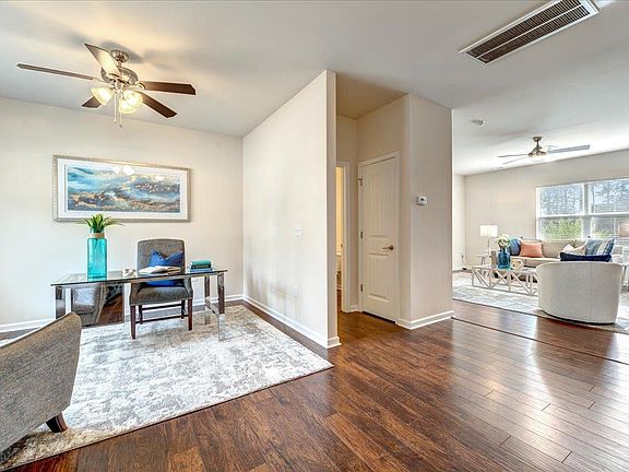 Meticulous 4 bed, 2.5 bath home in sought after Alston Ridge! Situated towards the end of a quiet street with no homes directly in front of property. Open concept w/ 1st flr office & generous FR. Kitchen w/ like new SS appliances, gas cktp, center island & ample storage! Upstairs w/ large loft/flex space, walk-in laundry & 4 bedrooms including primary with 2 large walk-in closets. Screened-in porch off kitchen. Backs to woods! Irrigation system. Lawn maintenance maintained by HOA. Washer & Dryer convey! Pool community, playground & walking trails. Near 540 and convenient to shopping and dining!