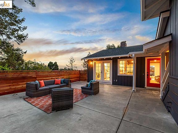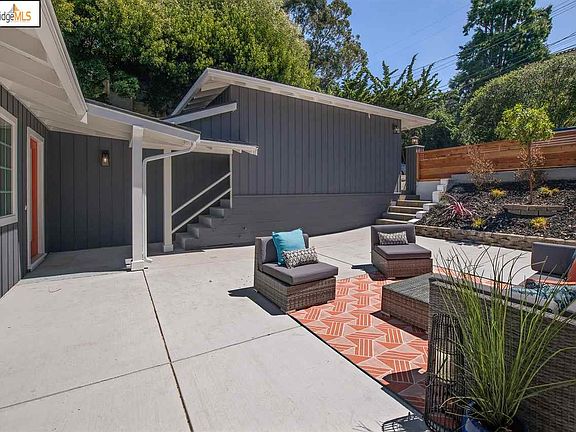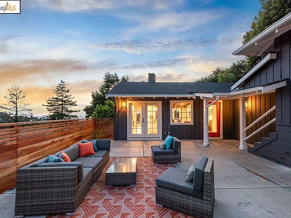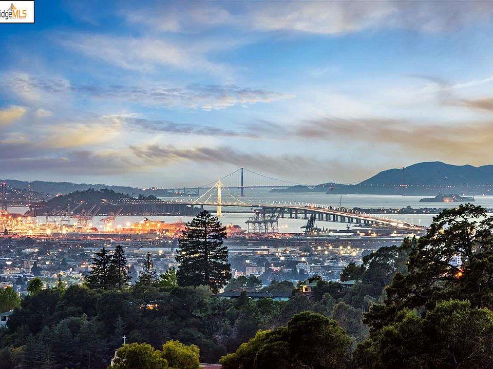Stunning mid-century home with two bridge views of the San Francisco Bay and downtown San Francisco, located on a tranquil cul de sac near Montclair Village, this newly renovated two story, sun-filled home features 4 bedrooms and three full bathrooms: a spacious living room which flows easily into the remodeled kitchen and dining room with a beautiful exposed brick wall, island and fireplace. French doors from the kitchen open to a spacious enclosed front patio area, great for outdoor dining and watching the kids and pets playing outside. Large picture windows and french doors from formal living, dining and master bedrooms span the back of the home leading to the upper level deck. Separate entrance to lower level family room, two bedrooms and one bath plus another kitchen ideal for entertaining guests, au-pair, in law rental options. Beautifully landscaped terraced garden via lower deck perfect for entertaining. Large two car garage and plentiful additional off-street guest parking.