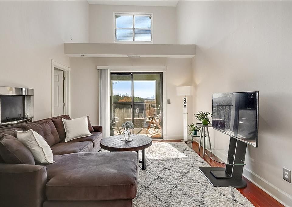 BEST DEAL IN ATL! Top flr faces N. Best location in complex! City views frm every window. Bright open condo! Over sized master on main w vaulted ceilings, 2 closets, & updated bath. Guest BR upstairs has huge bathroom & walk-in closet. Loft cld be office is wired, just needs a ladder! Updated kitchen cabinets, granite counters, bkfst bar, SS appliances & laundry closet. Covered balcony. Fresh paint throughout. All Appliances stay! LOW HOA FEES & TAXES! Gated w/ security. Amazing pool & amenities. Easy parking. Be on 400 or 85 in less than a minute!