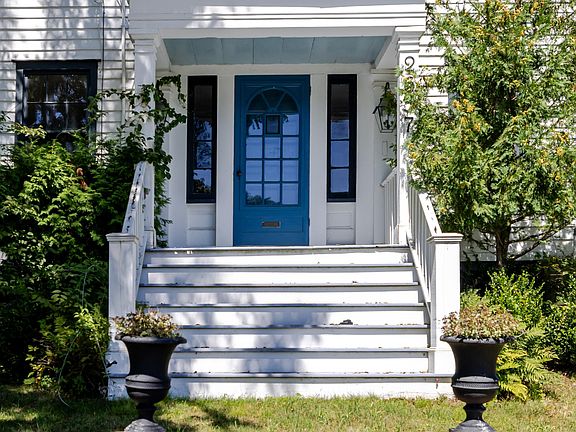 The large eat-in kitchen is a standout, featuring Bosch appliances and an inviting breakfast bar. A traditional pantry nods to the home's roots, while Carrara marble bathrooms and central air conditioning provide the ease of modern living. The formal dining room is perfect for entertaining, and the cathedral-ceiled primary bedroom creates a peaceful retreat upstairs.