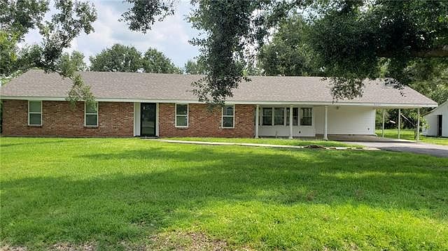 3 bedroom, 2 bath brick home on a slab, central air and heat, fireplace, new roof, large screened in sun room, 2 car carport, attached workshop, detached storage on slab ,slab for RV, open back patio on 1.1 acres m/l. Present owner purchased home in 2015 and home has not flooded since she purchased. Property is in a flood zone "AE". Home is in good condition and a few repairs are being done now ( eaves, facia, repair of 3 windows in sun room)