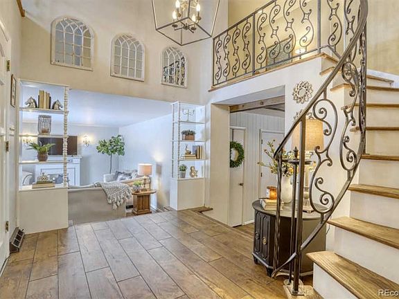 Beautiful one of kind 4 bedroom 3 bath home in Threamoor subdivision. This home has stunning mountain views that will leave the future owner in constant aw. This home is filled with rustic charm and elegance that begins with the lovely foyer and spiral staircase. This home has some lovely finishes such as the newly installed Engineered Wood floors, the beautiful custom wood windows, and hand crafted kitchen cabinets. This home features a newer hail resistant roof, newer furnace for the main and lower level, new sewer line, new carpet is being installed in the basement, and lots of new paint throughout. This property is perfect for setting up one or more work from home spaces throughout the house. This home was previously featured on the Botanical Garden Show. There is also an additional 500+ square foot bonus room on the upper level that is not included in the county records. You will love this charming Colorado home and breath-taking mountain views. located close to Red Rocks, foothills, Bear Creek Greenbelt Park and miles of hiking and biking trails.