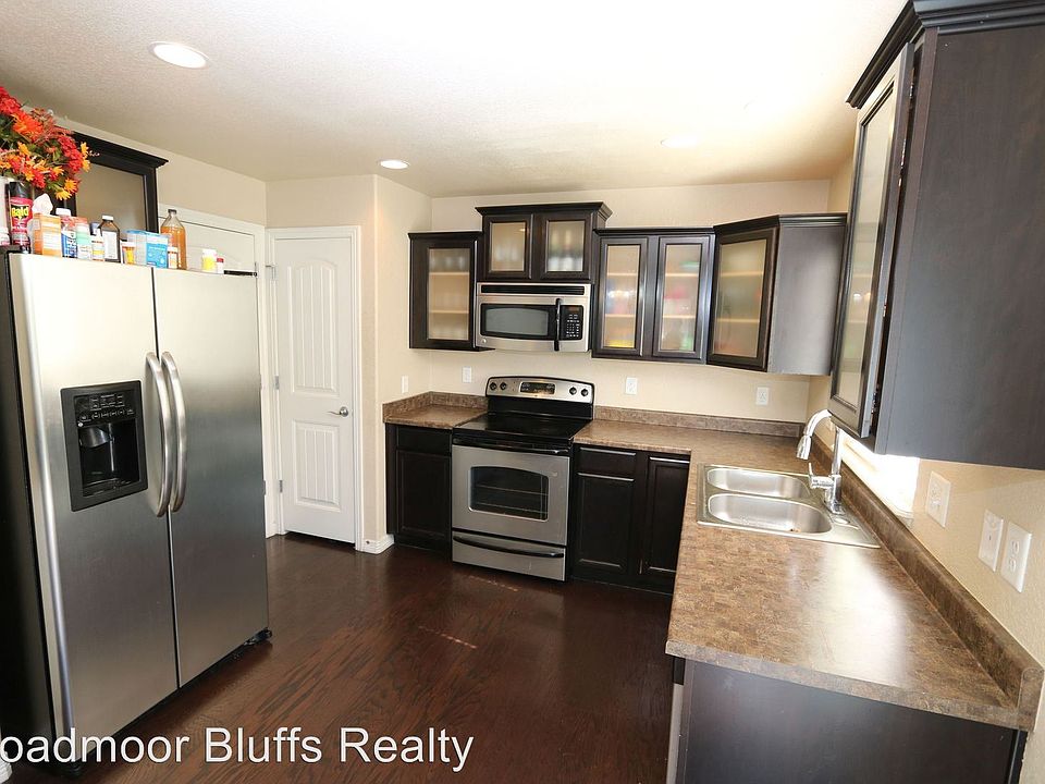 Almost new 3 bedroom home near Ft Carson - Fabulous single family home with 3 bedrooms upstairs with laundry room. Two full baths, master bath has dual vanity. Large master bedroom has walk-in closet. Main level living room with gas fireplace, dining area and kitchen with dark wood floors. Stainless appliances. HOA maintains landscaping. Sierra Springs development surrounds a park/play area. A/C, blinds, ceiling fans. Close to Ft Carson. No Pets Allowed (RLNE2744433)