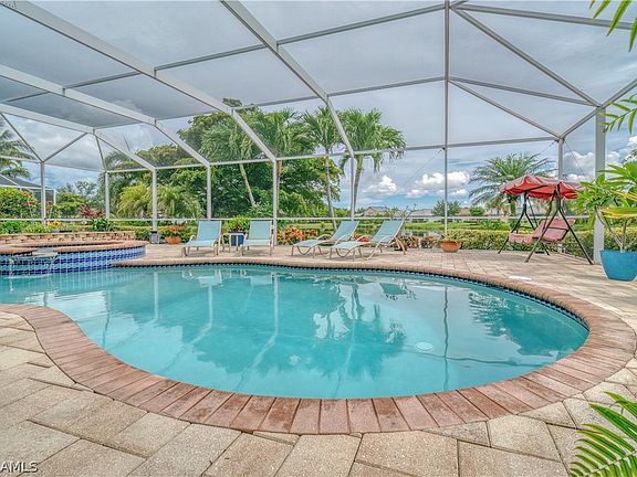 Experience the good life in this stunning lakefront home in the highly desirable Sandoval community. This magnificent home offers 3 bedrooms plus an office/den, 3.5 baths, a 3-car garage, and over 2,600 sq ft of living area. The recently remodeled dream kitchen features high-end cabinetry, Cambria quartz countertops, and top-of-the-line GE Café stainless steel smart appliances, including a refrigerator with warm and cold water dispensers; an oven with air fryer, bake, and broil capabilities as well as a warming drawer; 3-shelf dishwasher that can run the top, bottom, or both; microwave that bakes and toasts, and a Zephyr hood. The kitchen also includes a Blanco Cascade sink with a colander, a Moen smart faucet with a touchless sensor, a spacious pantry with a spice rack, 2 pull-out trays under the sink, and a docking drawer for charging your electronic essentials. Enjoy dining in the spacious area with mitered windows capturing the breathtaking views or at the large island counter, perfect for bar stools. The beautiful open floor plan includes a living area with tray ceiling & crown molding overlooking the pool, spa, and lake. The elegant master suite features crown molding, a French door to the lanai, and a spa-like master bath with a tiled shower, double sinks, and a vanity area. Guests will appreciate the privacy of the guest bedrooms—one with an ensuite private bath and a large walk-in closet, and the other with a guest bath just outside the door. The home also offers a wonderful office/den with double doors, large inside laundry room and platation shutters through out. Step outside to an extra-large lanai with a heated saltwater pool and spa, a beautiful screen enclosure, and plenty of room to bask in the sun or sit under cover. The paver garden area is perfect for growing your own spices. Lanai is plumbed and ready for outdoor kitchen. Enjoy the sunshine and serene views in this perfect outdoor space. Additional features include a brand new stone-coated metal roof, a significant $80K improvement favored by insurance companies, impact windows and doors, including sliders, and electric hurricane shutters on the lanai to protect the mitered windows. Sandoval is one of the premier gated communities in Cape Coral, offering resort-style living with amenities including tennis, pickleball, a fitness center, a resort pool, a community room, and more, all with a low HOA. This incredible home is ready for you to move in. Seller has assumable low fema flood policy. agents see supplements. Don't miss out on this amazing opportunity!