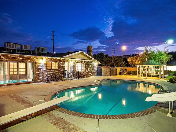 This home has been owned by the same family for the past 53 years and now you may create your own personal touches and cherished, lifetime memories. This is a custom 4 bed, 5 bath home that truly has it all. On almost a full acre, this single story offers an abundance of space both inside and out. Notable features include magnificent landscaping, wrought iron/block front fencing with security gates, hearty pistachio and olive trees, pool, indoor spa, beautiful wood paneling, two gorgeous used brick gas fireplaces, and two master bedrooms. The large, main master bedroom includes a sitting retreat area, cedar-lined walk-in closet and also a couple's bathroom - one of which provides access to the backyard and includes tile flooring with a drain, serving as the perfect pool bathroom/changing room. The other bath offers a spa tub and both have plenty of cabinets and accompanied with a vanity and built-in dressers in between.