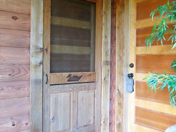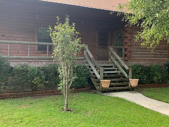 Beautiful log cabin on 2.3 acres! Inside this beauty there is antique heart pine wood flooring, soaring ceilings, fireplace w/ pellet burning insert, cypress cabinets, walk in pantry and a fancy electric convection oven stove with propane burners. Outside is where you will want to spend most of your time enjoying the privacy while relaxing on the deck that overlooks the backyard. White sandy creek runs along back of property and the owners see lots of deer! There is also an outdoor shower to rinse off after you play outside for the day. It doesn't get better than this!