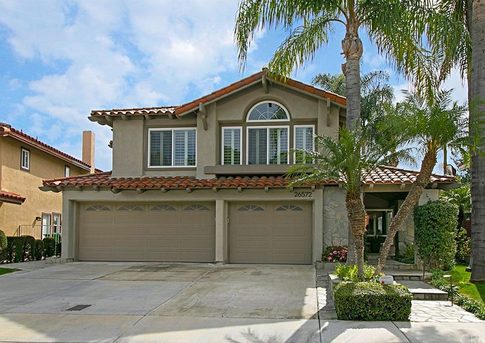 This beautiful J M Peters plan 5 home features an inviting floor plan with 4 bedrooms 3 bathrooms and a large bonus room. The full size living room and dining room are ideal for family gatherings. The gourmet kitchen is equipped with Viking appliances, granite countertops, generous cabinet space and self closing drawers. A custom designed nook opens to the family room complete with accented fireplace. A bedroom, upgraded full bathroom and separate laundry room complete the lower level. The master suite has vaulted ceilings, a fireplace and a large closet. The lovely master bathroom boasts marble countertops with a separate tub and shower. A private balcony off the master bedroom provides amazing views! Two additional bedrooms and bathrooms plus a spacious bonus room are on the second level. The backyard offers a built in barbecue, plenty of space for entertaining, and expansive views. This home has it all including a three car garage. Close proximity to Barbadanes Park and award winning Carl Hankey school. Membership to Lake Mission Viejo is also included. Easy access to freeways, grocery stores and The Shops at Mission Viejo.