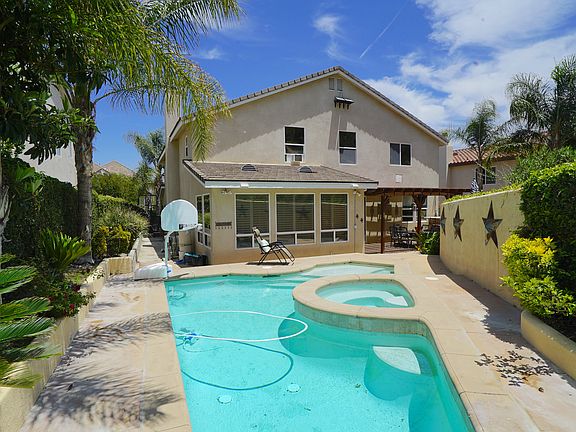 Beautiful and spacious home in the prestigious Stevenson Ranch Community. This lovely home has it all :Vaulted ceilings,amazing lights drawn from the abundance of windows. First floor has an extra large family room part of it is used as a man cave , formal dining room,kitchen with granite counter top, stainless steel appliances breakfast bar, sliding door leading to a nice covered patio and a BBQ area, sparkling pool & spa,laundry room, bonus room ( garage conversion) and powder room. Upper floor has a large master bedroom suite with nice bathroom and large closet,a smaller master and two additional bedrooms with Jack-Jill bathroom. The back yard is an entertainers delight for your family to sit and relax or entertain your friends next to custom fireplace and enjoy the gorgeous mountain views from the pool & spa. bedroom downstairs is permitted as bonus room and its sqft is not included in the original 3260 sqft ,Blue Ribbon schools and much more. Agents Please email Pead to the listing agent before showings and follow all the instructions for Covid-19. Pool table, budweiser light,fridge are excluded, Living room mirror included.