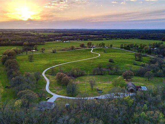 Come with me and tour this expansive private oasis. Upon arriving at the property, you’ll venture down the long, windy driveway where the vast front yard opens up into a welcoming home-front. There you will find a cozy, rustic home with a two-car attached garage, a two-car detached garage/shop, and a spacious back patio complete with a porch, pergola, and in-ground swimming pool. The home is nestled on top of the gently rolling terrain, giving a gorgeous sunset view of the property beneath. Large, strategically placed casement windows provide excellent natural light and the ability to enjoy fresh air throughout the house. Through the front door, you’re instantly invited into a living space complete with a fireplace and plentiful, large windows covering two walls. This room encapsulates the term “family room.” With its large cased openings, the semi-open concept offers a free flow of rooms, making each room feel large and airy, as well as keeping with the coziness of the floor plan. The kitchen is the heart of the home with a massive center island, double ovens, stovetop, large/deep farmhouse sink, and storage, storage, storage!! Just off of the kitchen is the mud/utility room with access to the attached garage. Both bedrooms include excellent-sized closets and large windows and are separated by a large full bathroom. The master suite is the epitome of relaxation. With private access to the back porch via french doors, the natural light and fresh air that can fill this suit is dreamy. There is a suitable walk-in closet next to the spa-like master bathroom complete with a jetted tub and walk-in shower. The remainder of the acreage is currently being used for income-producing hay that typically gets 2-3 cuts per year. There is a wet weather creek and a timber draw that runs through the central portion of the property where deer and turkey frequent often. The current owners have also had numerous successful quail hunts on the farm.