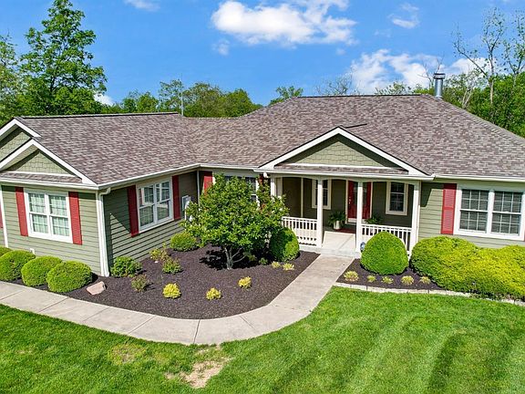 Absolutely incredible opportunity to own a piece of paradise. Welcome to this stunning ranch style home nestled in a picturesque setting with 15 acres. Boasting 4 bedrooms & 3.5 baths. This home features elegant hardwood floors, tasteful tile, dramatic stone fireplace, skylights and solid surface counter tops. The finished walkout basement is perfect for entertaining, complete with a wet bar, built-ins, fireplace, and patio. Ample storage is found in numerous closets as well as an oversized main floor laundry & mudroom, Additionally, the property includes extra detached garage, pole barn with workshop, providing endless possibilities for hobbies and recreation. Extensive decking, 3 season enclosed porch & pond with fountain. Home and detached garage have brand new roofs. Don't miss out in this exquisite retreat. Pre-inspected & sold as-is, estate. Dead end street. Sellers are reviewing offers on 5/9 at noon. Sellers reserve the right to accept an offer prior.