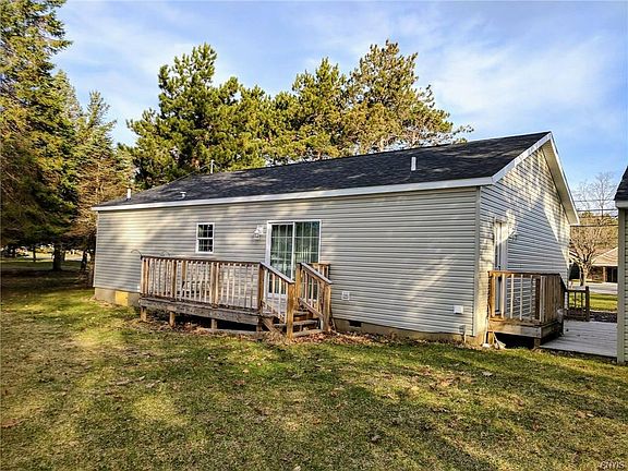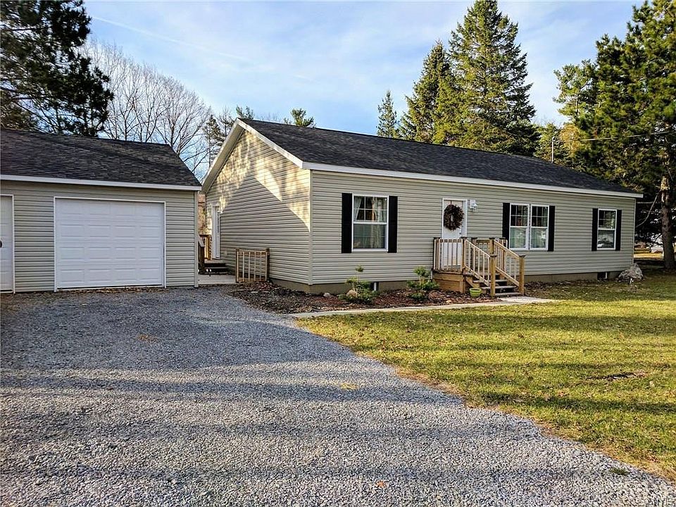 NEARLY NEW RIVERFRONT RANCH HOME!!! Spacious 3 bedroom 2 bath ranch home on 1 acre of land with public water, public sewer, and natural gas. Conveniently located just minutes to Fort Drum main gate and Watertown. 128 ft of Black River Riverfront with kayaking, boating, and fishing access just minutes away. Master suite with attached master bath with oversized shower, walk-in closet and double vanity. Open concept kitchen, living, and dining room with sliding glass door leading to rear deck with huge backyard. Lots of overhead storage in the two stall detached garage! This one has it all!!! Call or text today!