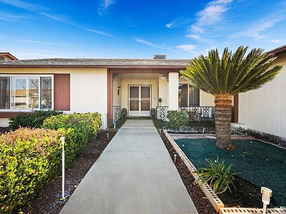 A vibrant new lifestyle awaits you in the Sun City Community! This dynamic 55+ neighborhood is brimming with amenities, clubs, and the friendliest neighbors. Experience it all in a beautifully maintained home located at 26579 Mehaffey St. You'll be greeted by drought-resistant curb appeal that’s been freshly manicured for your guests' arrival. Invite them to relax on the front porch with some iced tea, or welcome them inside to the living room and dining area, the heart of your home. The kitchen, conveniently located on the right side of the house, offers abundant storage and counter space, seamlessly connecting to the two-car garage with workshop that makes unloading groceries easy! Afternoons are best spent in the family room, where snacks are close at hand and a cozy wood-burning stove keeps everyone warm in the winter. Around the corner and beyond the living room is an enclosed sunroom that’s flooded with natural light. This bonus room is perfect for focused activities, extra dining space, and could even be a hobby room! On the opposite side of the house, you'll find the bedrooms and bathrooms, designed for privacy. The backyard is a true gem that’s been years in the making. You’ll love the mature citrus trees, gorgeous plants/flowers, drought-tolerant ground cover, storage shed, and 3 raised garden planters (with automatic watering systems) growing fresh produce for you to eat! Plus, the house features a solar PPA with SunRun and dual-pane vinyl windows, both helping to keep your electrical bills low and you comfortable! There are so many details that make this house more than just a living space, so come and make this place your home!