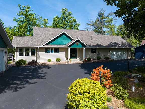 Welcome to your dream lake home, where Northwoods charm meets modern luxury on this amazing level lot & private bay. This custom-built property offers the perfect blend of comfort and convenience with so many amenities and proximity to the metro. Offering main level living with plenty of lodging options for guests, 4 season sun room, screen porch, along with a spacious walkout lower level that boasts a 2nd fireplace and bar area all with amazing lake views. The upper level loft / bedroom overlooking the lake, makes for a perfect remote working area. Enjoy one of the only true flat lots with sand beach on 171 feet of frontage on crystal clear Red Cedar Lake. This property comes with some dock, & lift, plus a hard wired whole home backup generator. Detached garage provides room for all the toys. Inc. full access to the Loch Lomond Beach Club. This property is truly move in ready, to start enjoying time at the lake on closing day.