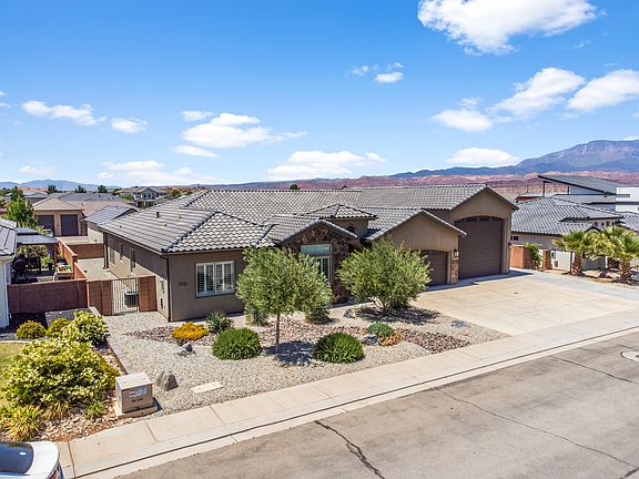 Welcome to your dream home in the coveted Dixie Springs neighborhood of Hurricane, Utah. This exquisite 4 bedroom, 2.5 bathroom home, built in 2018 and occupied for just three years. Offers unparalleled luxury and modern amenities, perfect for comfortable living and entertaining. A striking iron front door welcomes you into the sophisticated interior. With ceilings soaring 10-12 feet high throughout, this home exudes an open and airy ambiance. Equipped with spray insulation and a radiant barrier roof, 2 x 6 exterior walls, R-23 insulation, ensuring energy efficiency and comfort year-round. Featuring a subzero refrigerator, stainless steel Zephyr hood vent, and mitered edged countertops, this kitchen is a chef's delight. Beautiful wood shutters adorn the windows, and high-quality vinyl flooring spans the entire home. The oversized RV garage with an RV dump is perfect for adventurers, offering ample storage and convenience. The RV garage measures 52' 6" deep with a 16' 8" Rv garage door. The 2 car garage measures 26' 8" deep with a 17' 8" garage door. The home is nestled close to the beautiful Sand Hollow Reservoir, enjoy easy access to outdoor activities and breathtaking views.