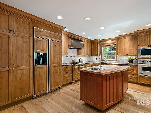 Rare opportunity in desirable SE Boise, this single level gem is just minutes from the Boise River/Greenbelt, Baggley Park and local dining/shopping! Premier oversized 1/3-acre lot surrounded by lush, mature landscaping is the ideal backdrop for gardening or relaxing beneath the Sunsetter awning. Entertain family and friends on the spacious deck equipped with a natural gas grill, outdoor speakers and ambient low voltage lighting. Soaring ceilings and white oak hardwoods elevate the gracious open-concept layout flowing seamlessly between the expansive great room (with surround sound) and tastefully updated kitchen with Viking gas range and oven, instant hot water at the sink, two built-in spice racks and direct access to the park-like backyard for easy indoor/outdoor living. Light-filled master suite accented by timeless French doors opens onto the shaded patio creating the perfect private retreat! Third bedroom with built-in executive desk and credenza makes working from home a breeze.