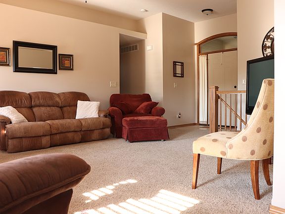 This great ranch home sits on a large fenced corner lot and has an east backyard. The floor plan is very open with vaulted ceiling, a fireplace in the living room and large kitchen with an island and hardwood floors. The main floor has 3 bedrooms the master has a master bathroom with walk-in closet, 2 sinks and tub and shower. The other 2 main floor bedrooms are 12 x 11. The basement is all finished, it is a view out basement with a 21 x 33 family rec room. There are 2 large bedrooms and a full bath. Family room is viewout with wood stove and surround sound. There is a 3 car garage, a well and sprinkler system and a privacy fenced back yard. the neighborhood has a pool, lake and playground. Just 10 minutes to highway 96. Great family home and move in ready.